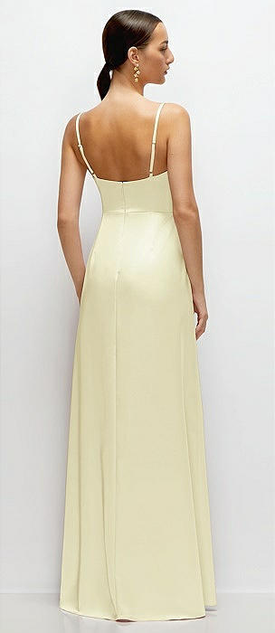 Cowl Neck Satin Maxi Dress with Adjustable Spaghetti Straps in butter yellow