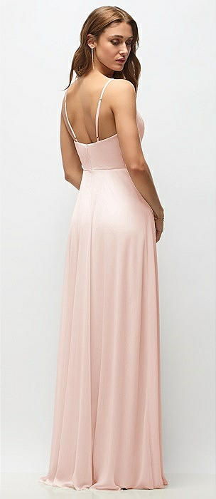 Wrap Bodice Chiffon Maxi Dress with Adjustable Spaghetti Straps in blush