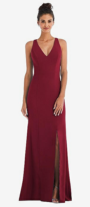 Criss-Cross Cutout Back Maxi Dress with Front Slit in burgundy