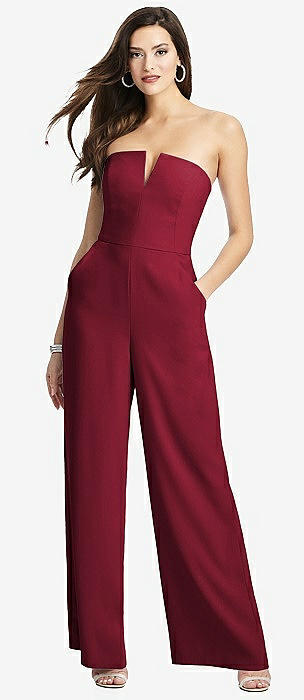Strapless Notch Crepe Jumpsuit with Pockets in burgundy