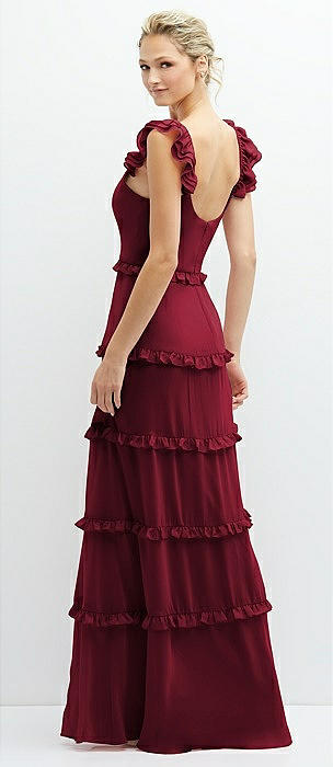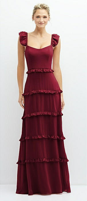 Tiered Chiffon Maxi A-line Dress with Convertible Ruffle Straps in burgundy