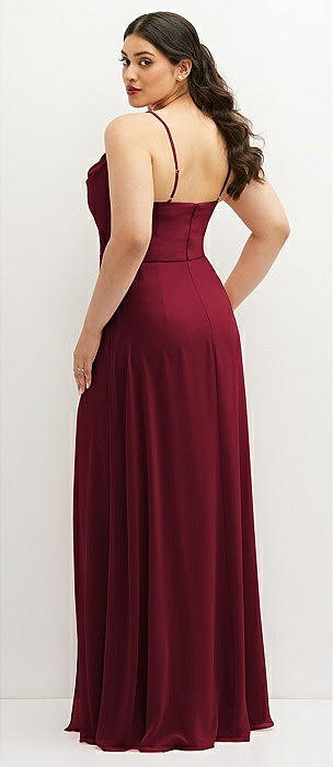 Soft Cowl-Neck A-Line Maxi Dress with Adjustable Straps in burgundy