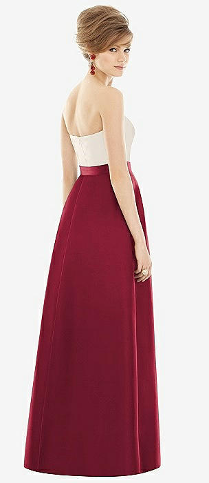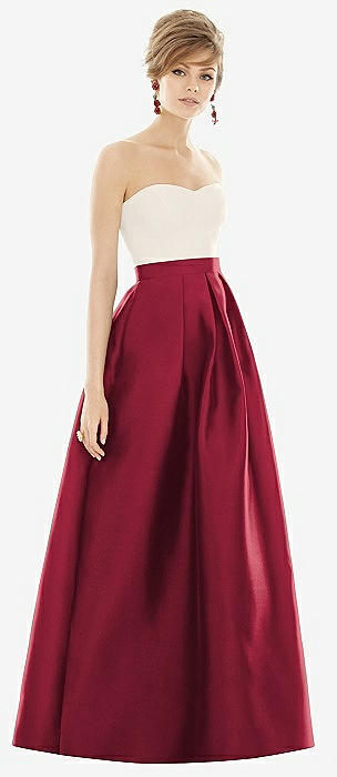 Strapless Pleated Skirt Maxi Dress with Pockets in burgundy