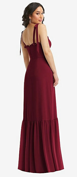 Tie-Shoulder Chiffon Maxi Dress with Front Slit in burgundy