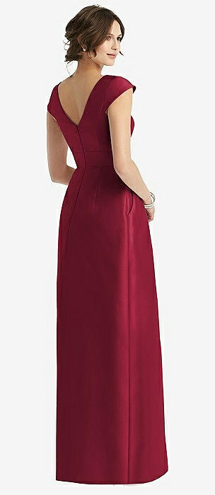 V-Neck Full Skirt Satin Maxi Dress in burgundy