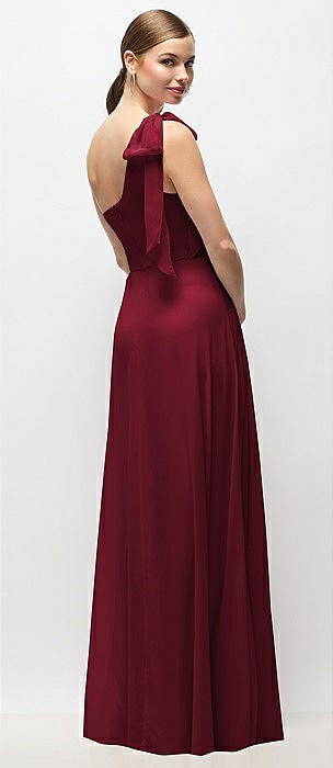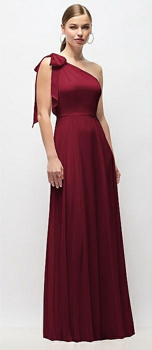 Draped One-Shoulder Maxi Dress with Scarf Bow in burgundy