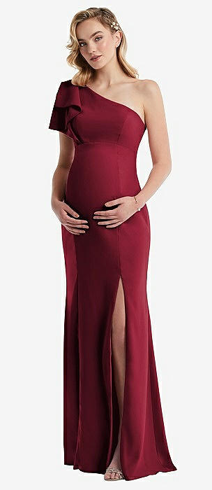 One-Shoulder Ruffle Sleeve Maternity Trumpet Gown