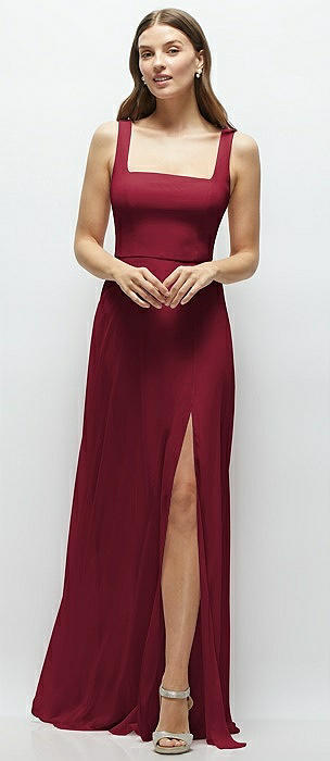 Burgundy Square Neckline Bridesmaid Dresses