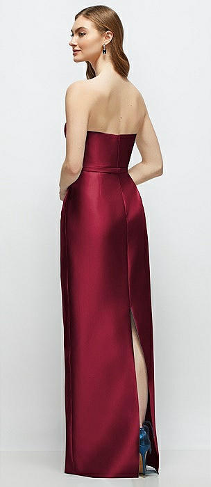 Strapless Satin Column Dress with Removeable Watteau Train in burgundy