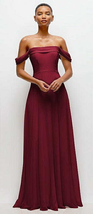 Off-the-Shoulder Draped Neckline Maxi Dress in burgundy