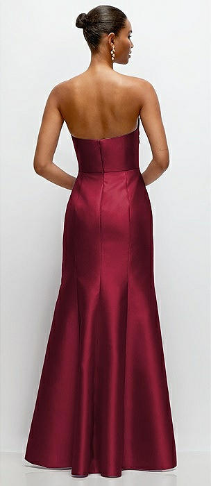 Strapless Cuff Neckline Satin Trumpet Gown in burgundy