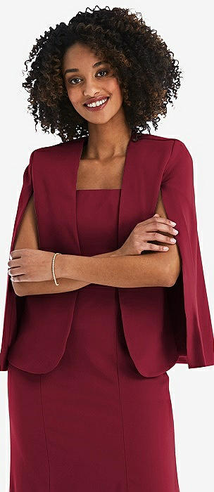 Open-Front Split Sleeve Cape Jacket in burgundy
