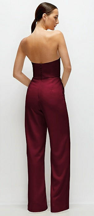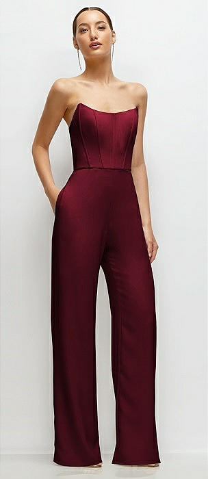 Strapless Cat-Eye Corset Crepe Wedding Jumpsuit in burgundy