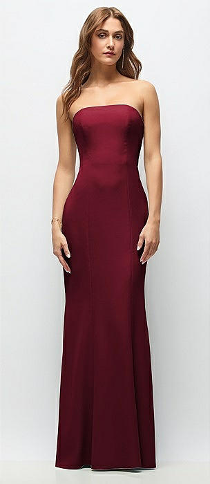 Strapless Fit and Flare Crepe Maxi Dress in burgundy