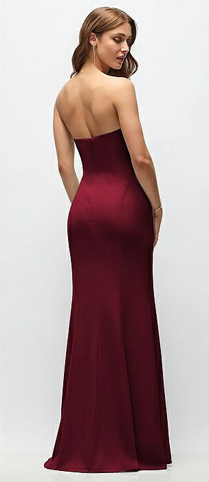 Strapless Scoop Back Maxi Dress with Front Slit in burgundy