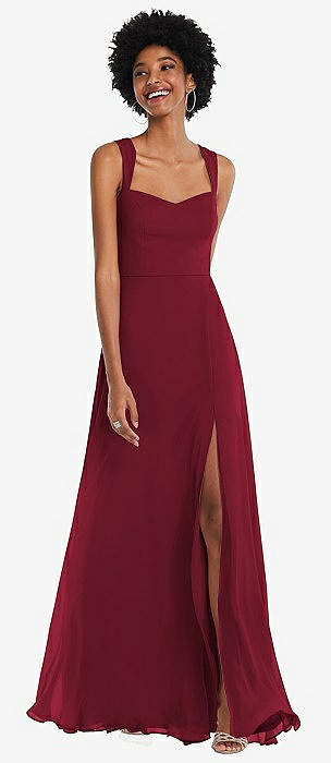 Contoured Wide Strap Sweetheart Maxi Dress in burgundy