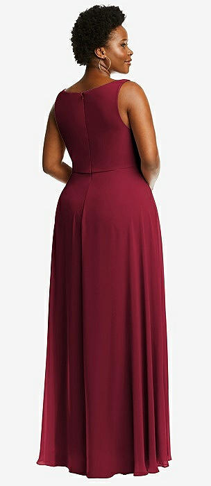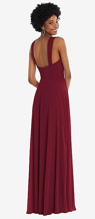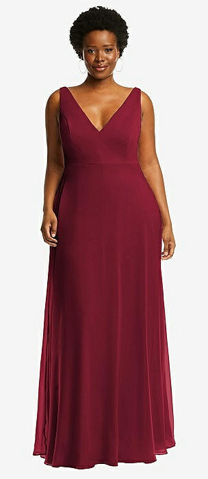 Deep V-Neck Chiffon Maxi Dress in burgundy