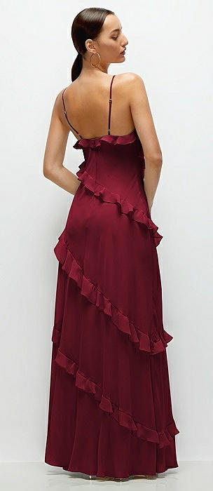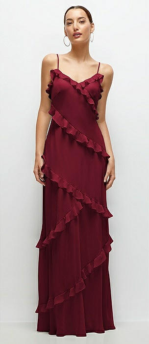Asymmetrical Ruffle Chiffon Bias Slip Maxi Dress