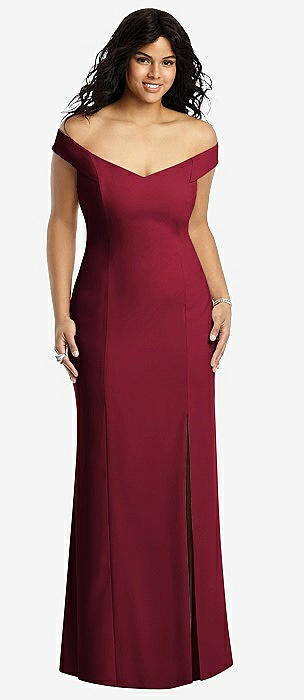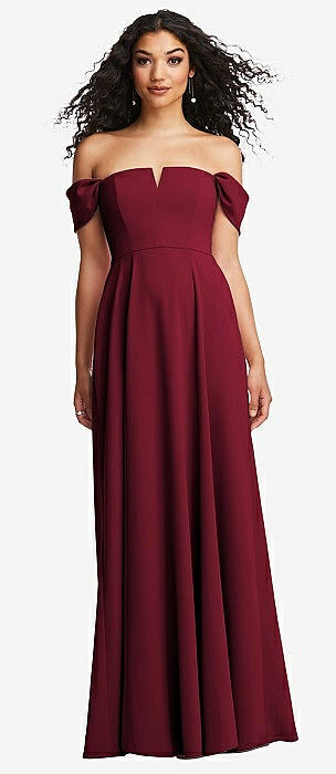 Dessy Burgundy Off-The-Shoulder Bridesmaid Dresses