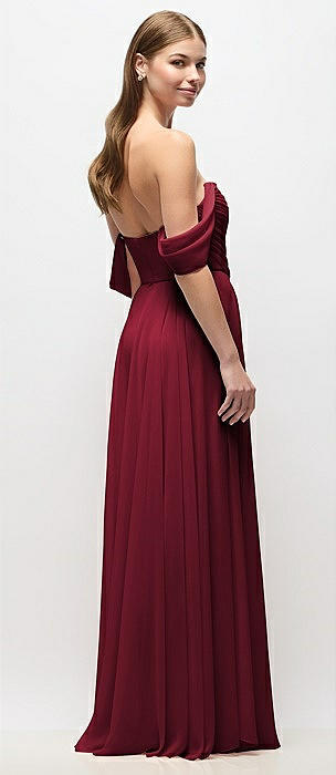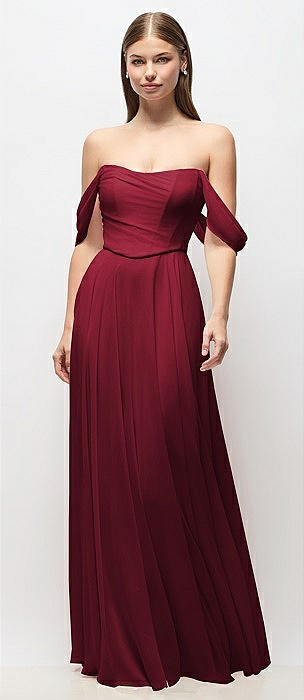 Off-the-Shoulder Basque Corset Chiffon Maxi Dress in burgundy
