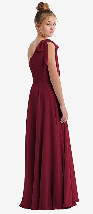 One-Shoulder Scarf Bow Chiffon Junior Bridesmaid Dress