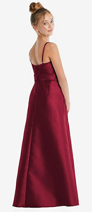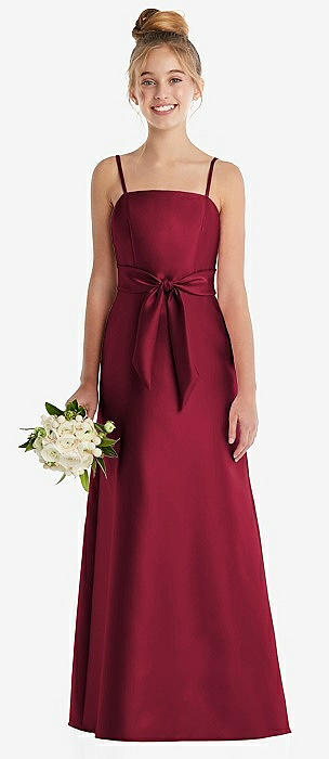 Spaghetti Strap Satin Junior Bridesmaid Dress with Mini Sash in burgundy