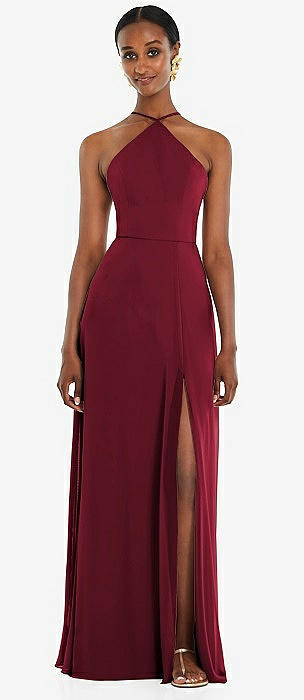 Diamond Halter Maxi Dress with Adjustable Straps in burgundy