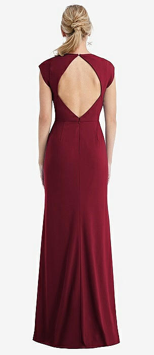 Cap Sleeve Open-Back Trumpet Gown with Front Slit