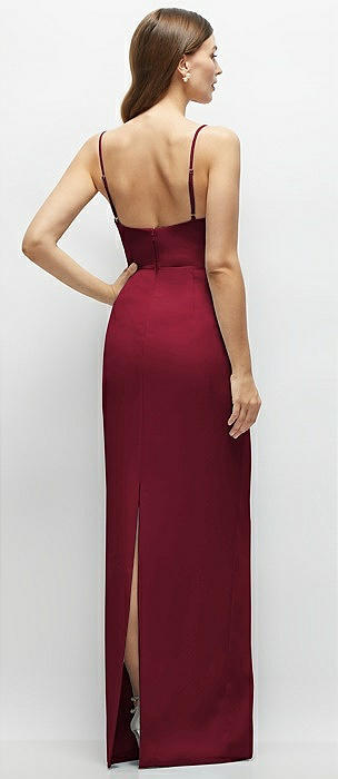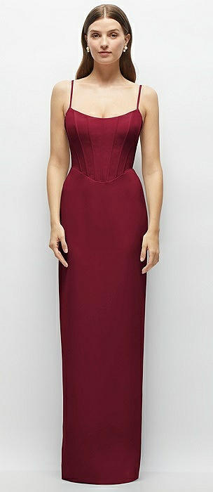 Corset-Style Crepe Column Maxi Dress with Adjustable Straps in burgundy