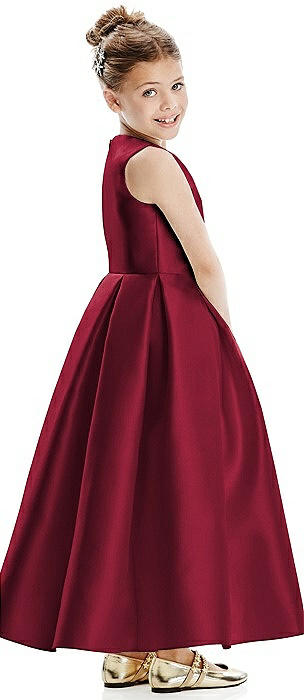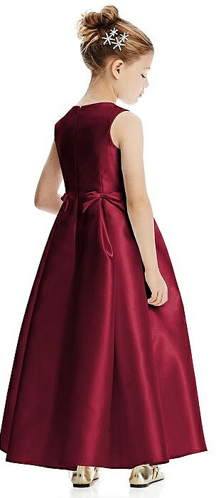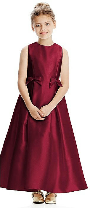 Princess Line Satin Twill Flower Girl Dress with Bows in burgundy