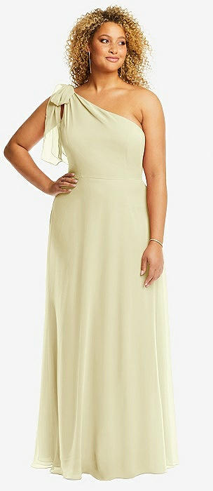 Chiffon One-Shoulder Maxi Dress with Circle Skirt in butter yellow