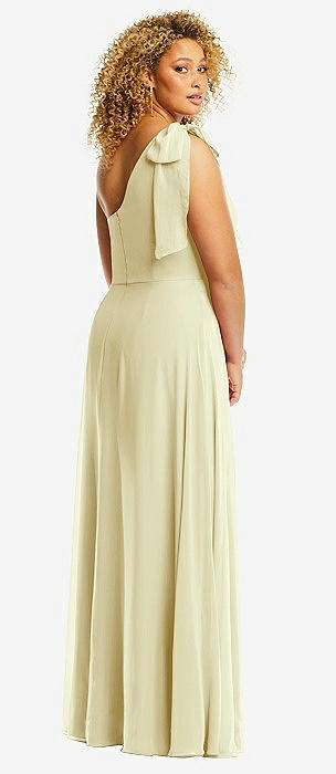 One-Shoulder Chiffon Maxi Dress with Shirred Front Slit in butter yellow