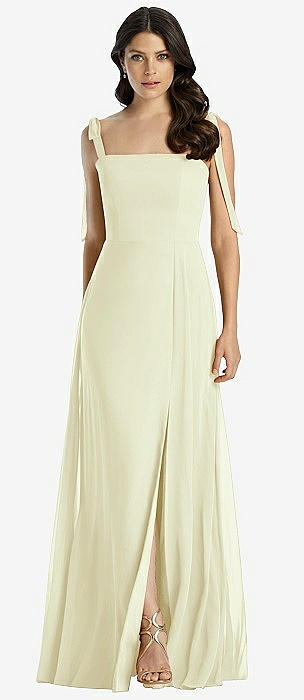 Tie-Shoulder Chiffon Maxi Dress with Front Slit in butter yellow