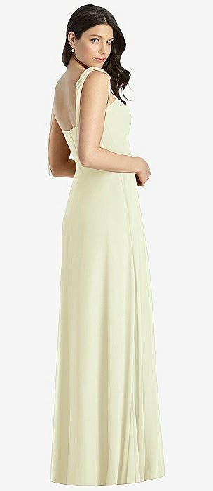 Bow-Shoulder V-Back Chiffon Gown with Front Slit in butter yellow