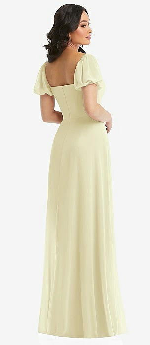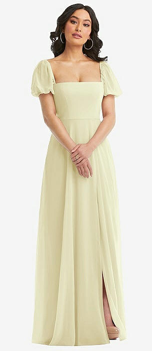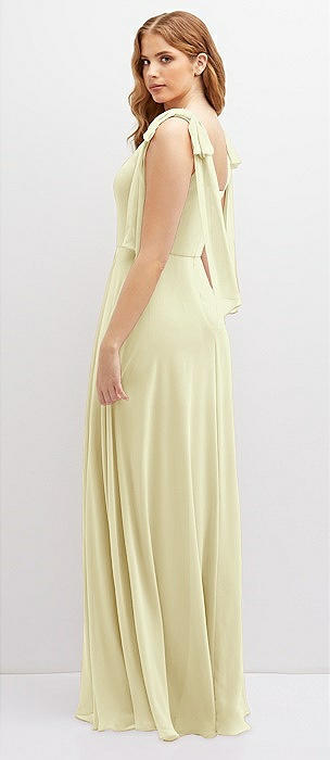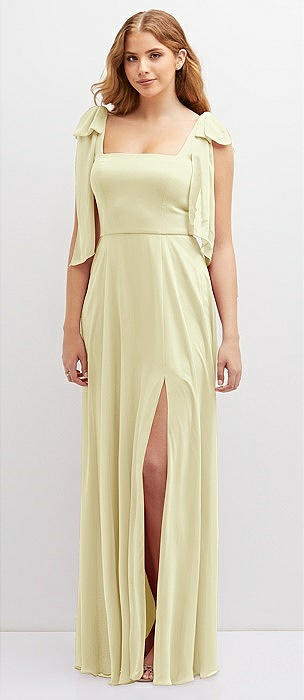 Bow Shoulder Square Neck Chiffon Maxi Dress in butter yellow