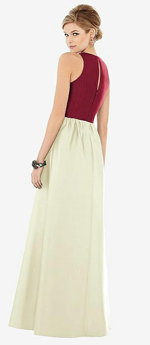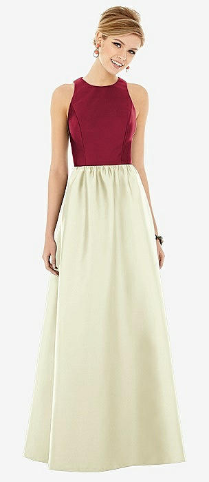 V-Neck Halter Satin Trumpet Gown in butter yellow