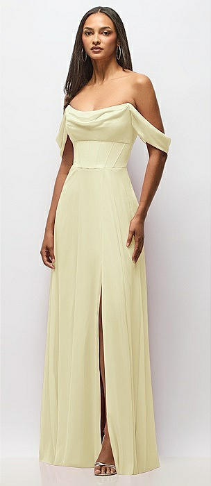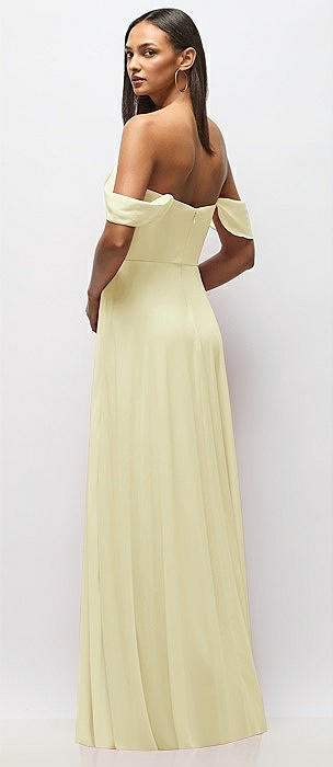 Chiffon Corset Maxi Dress with Removable Off-the-Shoulder Swags in butter yellow