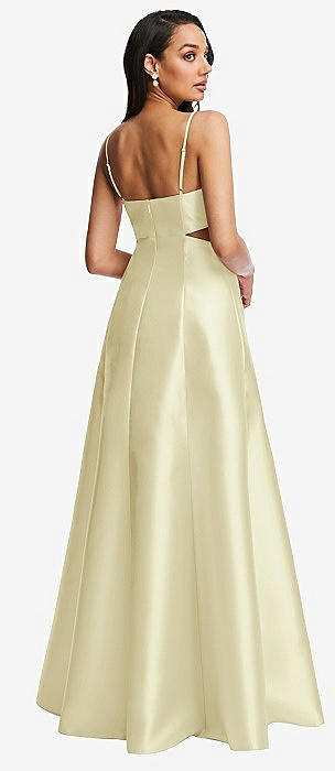 Open Neckline Cutout Satin Twill A-Line Gown with Pockets in butter yellow