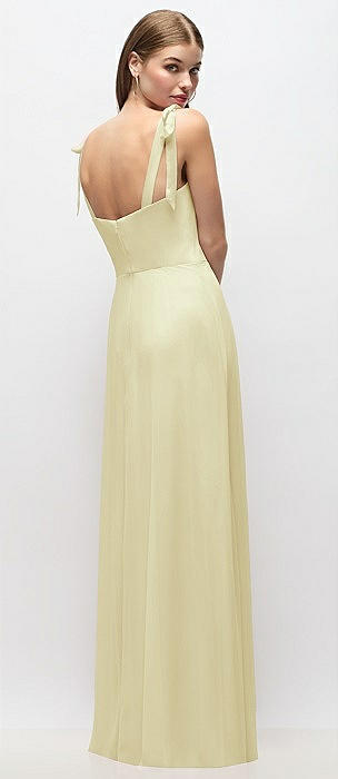Tie-Shoulder Chiffon Maxi Dress with Front Slit in butter yellow