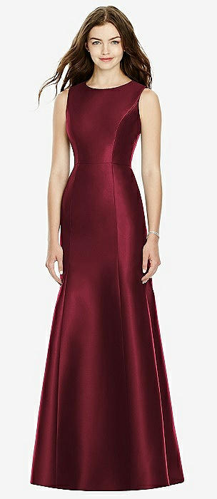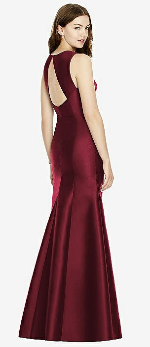 Sleeveless Satin Trumpet Gown with Bow at Open-Back in cabernet
