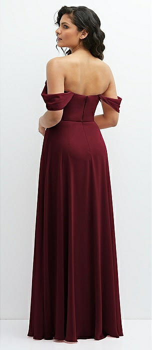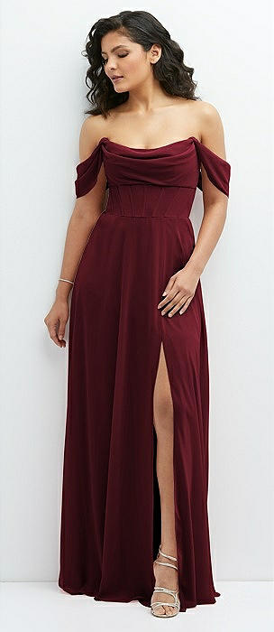 Chiffon Corset Maxi Dress with Removable Off-the-Shoulder Swags in cabernet