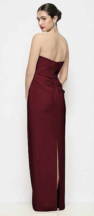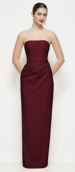 Strapless Satin Column Dress with Removeable Watteau Train in cabernet