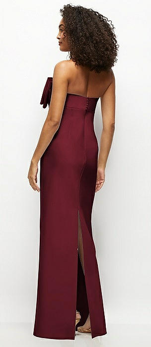 Strapless Satin Column Maxi Dress with Oversized Handcrafted Bow in cabernet