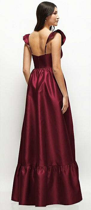 Satin Corset Maxi Dress with Ruffle Straps & Skirt in cabernet