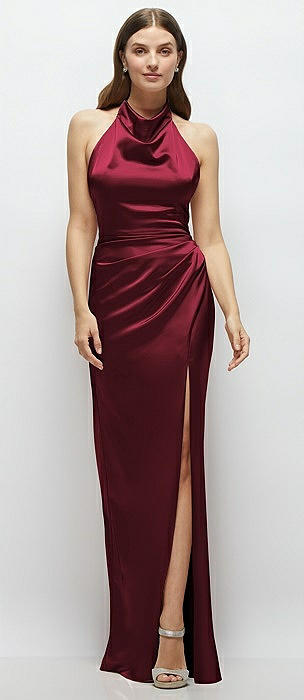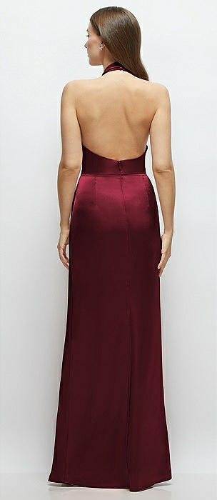 V-Neck Halter Satin Trumpet Gown in cabernet