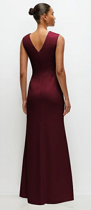 Sleeveless Cap Shoulder Crepe Maxi Dress with Trumpet Skirt in cabernet