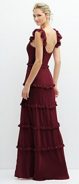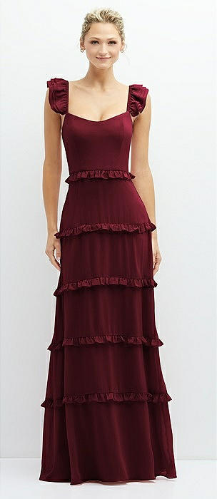 Tiered Chiffon Maxi A-line Dress with Convertible Ruffle Straps in cabernet