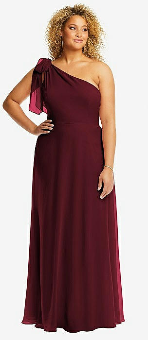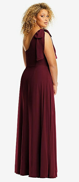 Draped One-Shoulder Maxi Dress with Scarf Bow in cabernet