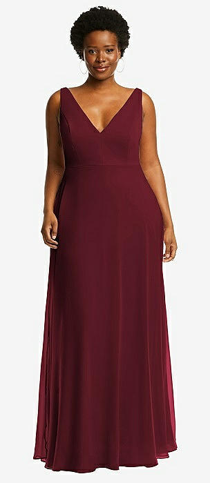 Deep V-Neck Chiffon Maxi Dress in cabernet
