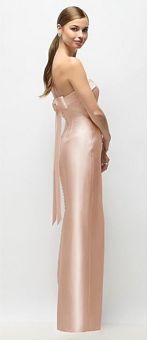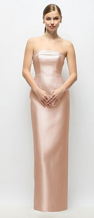 Strapless Cuff Satin Maxi Dress with Column Skirt & Back Bow in cameo